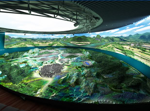 MORE>>以聲、光、電等形式,構成視覺傳達語言,讓參觀者更易于接受。并把舞臺燈光、3D技術、弧幕顯示系統、聲光電系統、三維動畫等應用其中,賦予互動展項更豐富的視覺表現力,為參觀者帶來沉浸式震撼效果。